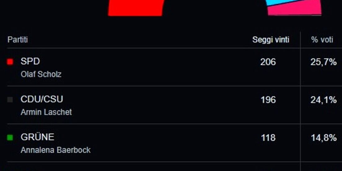 “Gli elettori hanno parlato con grande chiarezza. Hanno detto chi deve formare il prossimo governo. Tre partiti si sono rafforzati, i Verdi, la Spd ed i Liberali e sono loro che hanno il compito di formare e guidare il prossimo governo”. Il candidato della Spd alla cancelleria, Olaf Scholz, commenta così l’esito del voto, annunciando la vittoria della Spd. I socialdemocratici tedeschi di centro-sinistra vincono le elezioni nazionali, battendo di poco il blocco di centro-destra dell’Unione della cancelliera uscente Angela Merkel, in una competizione elettorale molto combattuta che determinerà chi succederà alla leader storica alla guida della più grande economia europea. Scholz: “Mandato molto chiaro” Per il candidato dei socialdemocratici Olaf Scholz, vice cancelliere uscente e ministro delle finanze che ha tirato fuori il suo partito da una crisi lunga anni, il risultato è “un mandato molto chiaro”. “La Cdu e la Csu non hanno solo perso molti voti ma effettivamente hanno anche ricevuto un messaggio dagli elettori ossia che non dovranno essere al governo ma andare all’opposizione”, ha detto. “Il nostro compito adesso è fare quello che desiderano i cittadini. Non dare la priorità alle nostre esigenze, ma formare un buon governo che possa dare un giusto orientamento e che ci porti versi il futuro”. Poi ha aggiunto: “La Germania deve svolgere un ruolo sovrano all’interno dell’Europa”. E ancora: “La Germania è sempre stabile. E questo, nonostante l’attuale incertezza sulla futura coalizione, ha spiegato. Al fianco di Scholz, Franziska Giffey, che ieri ha vinto le elezioni a Berlino e sarà la prima sindaca della capitale, e la ministra presidente uscente Manuela Schwesig, che ieri ha trionfato nel Land del Meclemburgo-Pomerania Anteriore. “Si vede qui un Spd molto felice! Due vincitrici e un vincitore”. In conferenza stampa, Scholz ha ribadito l’urgenza di formare un governo in fretta: “Spero ci sia un nuovo esecutivo “prima di Natale”. Sull’Europa, ha detto: “Nessuno deve cercare di dominare l’Unione europea. Ci deve essere una buona collaborazione fra nord e sud, est e ovest. L’Ue deve crescere insieme e faremo in modo che l’Europa cresca meglioinsieme”, ha concluso Scholz, sottolineando che questo è uno dei tratti distintivi della sua linea. Laschet: “Scholz non è il re” “I Verdi vogliono che ci prepariamo a partecipare a un possibile governo. Non bisogna apparire arroganti e questo vale anche per Olaf Scholz. Scholz non è il re”. Armin Laschet ha attaccato con queste parole il candidato socialdemocratico alla cancelleria, durante una riunione del comitato esecutivo federale del partito secondo quanro riporta la Bild. Il leader della Cdu ha dovuto ammettere di “non poter essere contento del risultato”, il crollo è di quasi nove punti rispetto a quattro anni fa. E lo schiaffo definitivo arriva quando si appura la conquista dell’Spd anche del collegio uninominale di Rgen, nel Land del Meclemburgo-Pomerania Anteriore, che Merkel aveva vinto per ben 8 volte di seguito dal 1990. Il capo della Cdu ha ribadito di puntare a una coalizione ‘Giamaica’, assieme ai liberali dell’Fdp e ai Verdi, spiegando che “una coalizione deve essere un progetto politico, non è un matrimonio forzato, né somma matematica”. “Cancelliere sarà chi avrà la maggioranza in Parlamento”, ha concluso, dicendo anche che “nessun partito ha ottenuto un chiaro mandato di governo”. Habeck: “Andiamo incontro ai liberali” “Per prima cosa andiamo incontro all’Fdp”. Lo ha detto all’emittente Ndr Robert Habeck, che condivide con Annalena Baerbock la guida dei Verdi tedeschi. “Ora vediamo se riusciamo a portare a casa il risultato”, ha aggiunto Habeck, che ha comunque ricordato anche le distanze con i liberali di Christian Lindner, dato che “nelle questioni sociali, fiscali e finanziare siamo veramente lontani”. Parlando invece con il Deutschlandfunk, il co-leader del partito ambientalista ha ricordato che “in prima linea le decisioni che prenderemo dipenderanno dai contenuti”. Da questo punto di vista, secondo Habeck è il candidato socialdemocratico Olaf Scholz “a godere di un evidente anticipo di fiducia” da parte degli elettori. E dato che la Spd “è chiaramente davanti all’unione Cdu/Csu”, l’ipotesi di una coalizione ‘semaforo’ (formata da socialdemocratici, Verdi e liberali) “ha un vantaggio per quanto riguarda il nostro orientamento di fondo”. Fdp: governo prima di Natale I liberali dell’Fdp si apprestano a svolgere il ruolo che tutti si aspettano, ovvero quello di aiutare a comporre una difficile coalizione di governo trattando con i Verdi ed esprimono una preferenza per la coalizione cosiddetta “Giamaica”, ovvero a guida cristianodemocratica, ma sono disponibili anche a quella “semaforo” condotta dai socialdemocratici. In ogni caso, la priorità è quella di non trascinare a lungo le trattative e di dare alla Germania un governo prima di Natale. Lo ha sintetizzato, durante un dibattito organizzato questa mattina dal gruppo dei Liberali al Parlamento europeo (Alde), il neoeletto deputato Fdp Thorsten Lieb, avvocato quarantottenne, presidente del partito a Francoforte e vicepresidente in Assia. “Al 55% vedo una coalizione a guida Cdu, al 45% con l’Spd, ma la priorità è fare il governo prima di Natale”, ha detto. Secondo gli ultimi dati, nel prossimo Bundestag ci saranno 92 deputati liberali, in aumento rispetto agli 80 della legislatura che si e’ appena conclusa. Merkel: “Serve governo molto rapidamente” La cancelliera Angela Merkel ha auspicato la creazione di un governo “molto rapidamente”. Lo ha detto, secondo quanto riporta la Bild, durante la riunione della Cdu il giorno dopo le elezioni. “Verdi e Fdp – avrebbe aggiunto secondo le ricostruzioni del quotidiano tedesco – vogliono sapere subito le nostre intenzioni”. Vince Spd, crolla Cdu, 